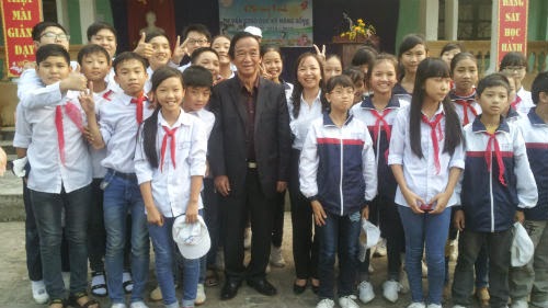 Cuối chương trình, giáo sư đã chụp ảnh lưu niệm cùng với thầy và trò trường THCS Đức Thắng.